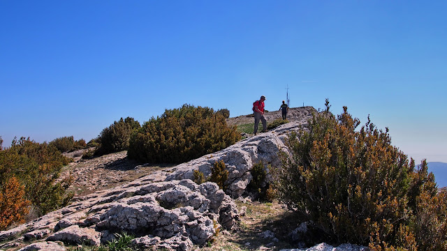 Salva y Manolo suben la canal de l'Embut mientras Angels y yo vamos por la cresta a encontrarnos con ellos cuando lleguen al final.